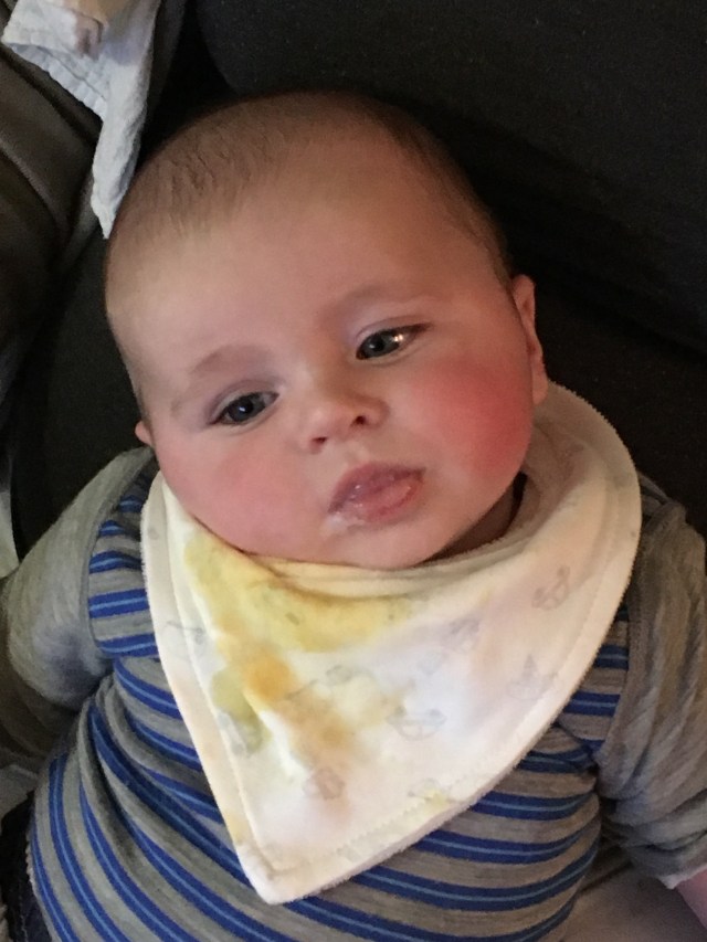 Today I have tried my first “solid” food (apple and mango purรฉe no less). A bit of a shock to the tastebuds at first but, with Daddy’s gentle reassurance, I have decided that it was delicious.