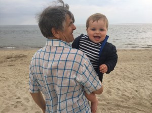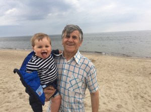 With grandad Antanas, Baltic Sea
