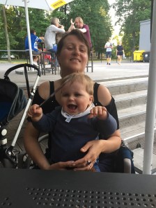 With Indre and Mum at the bistro in Vilnius